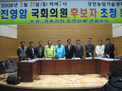 이날 토론회에서 강진.장흥 농민연대에서 추천된 패널 5명은 고공물가시대 안정적 식량자급 정책, 비료.농약.사료.기름값 폭등대책, 쌀 소득 보전직불제 인상대책, 축산, 친환경 농업 활성화대책, 한미FTA 국회비준에 대한입장 등을 예리하게 질문했다.