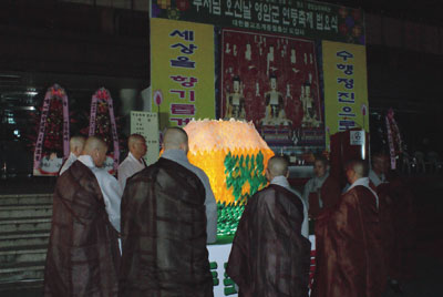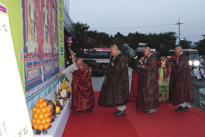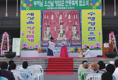점등식 연등축제 법요식에서 각 사찰 주지와 기관.사회단체장들이 연드엥 불을 밝히고 있다.