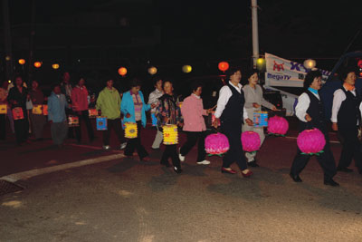 등불행렬 군민과 불자들이 손에 손애 민주의 소망을 담은 1천여개의 작은 등불들고 행진하고 있다