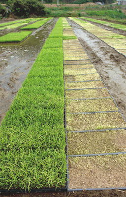 답답했던 최씨는 두번째 모판을 깔면서 두 업체의 상토를 구분해 나란히 모판을 깔았다. 결과는 확연히 눈에 띌 정도로 차이가 났다. 똑같은 환경 조건에서 한 업체의 상토를 사용한 모만 말라 죽은 것이다.