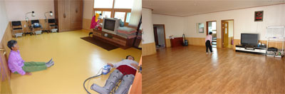 정우재가노인복지센터는 넓고 깔끔한 실내와 청결한 식당과 방, 목욕실, 세탁실, 건강관리실, 놀이방 등을 갖추고 있어 노인들의 일상생활에 불편함이 없다.