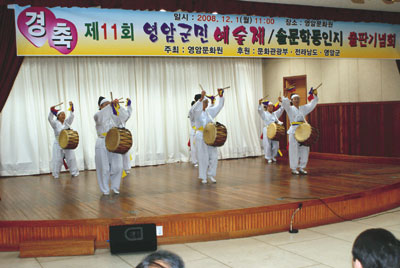 이날 기념식의 여는마당 공연에는 영암민속예술단(단장 한정희)의 사물놀이에 이어 미암서초등학교(교장 나순옥) 전교생이 참가하는 기악합주 공연이 펼쳐져 박수갈채를 받았다.