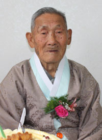 영암읍 송평리 신정마을 사시는 ‘학암양반’ 이계천 할아버지께서 상수(上壽 : 100세)를 누리셨다. 막내아들 이동진씨와 함께 케익의 촛불을 불어 끄신 할아버지. 큰 초 10개.