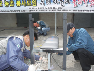 대불산단 노동자들이 농촌 마을을 찾아 농기계 무상수리와, 주택 보수, 어르신 친구되드리기 활동을 펼치고 있어 주민들에게 훈훈한 정을 전달하고 있다.