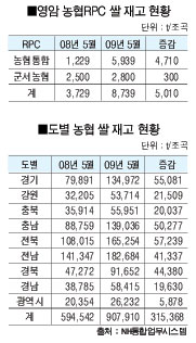 전체 농협RPC만으로는 5월말 재고량이 55만t으로 지난해 보다 15만7천t, 39.8%가 증가했다.