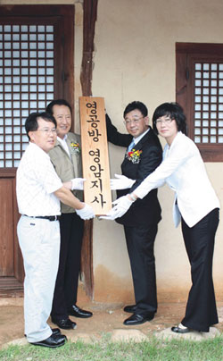 9일 ‘군도기박물관’내에서 지난5월 영암군과 한옥관련 상호협력협정을 체결한 영공방(대표 박영종)이 김일태영암군수,박영종대표,영암전통한옥학교장, 도,군 관계자등이 참석한가운데 영암지사와 체험학습관 개소식을 가졌다.