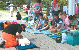 주말과 휴일이면 8만여명의 피서객이 붐비는 곳이기 때문에 항상 안전사고에 대한 긴장감을 늦출 수 없다. 지난달 11일 기찬랜드 개장 이후 지금까지 이들 수상안전지킴이들이 응급처치한 환자는 413명.