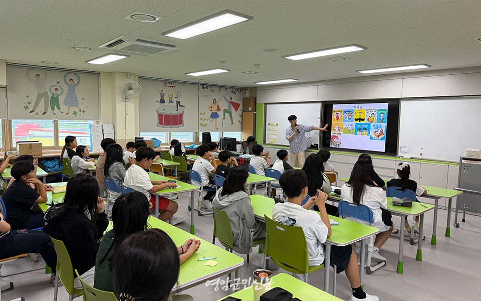강연 후에는 독후 활동으로 반장씩 넘어가는 재밌는 그림책 제작 활동이 이어졌다. 학생들은 박규빈 작가와 함께 자신만의 재밌는 캐릭터를 그려보는 활동을 진행하며 창의력과 상상력을 경험하는 시간을 가졌다.