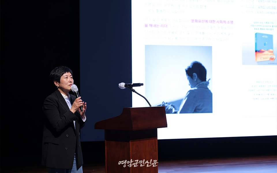 <잊혀진 나라 마한 여행기>의 정은경 작가가, 영암군이 23일 한국트로트가요센터에서 개최한 특강에서 ‘영암 마한’의 중요성을 강조했다.