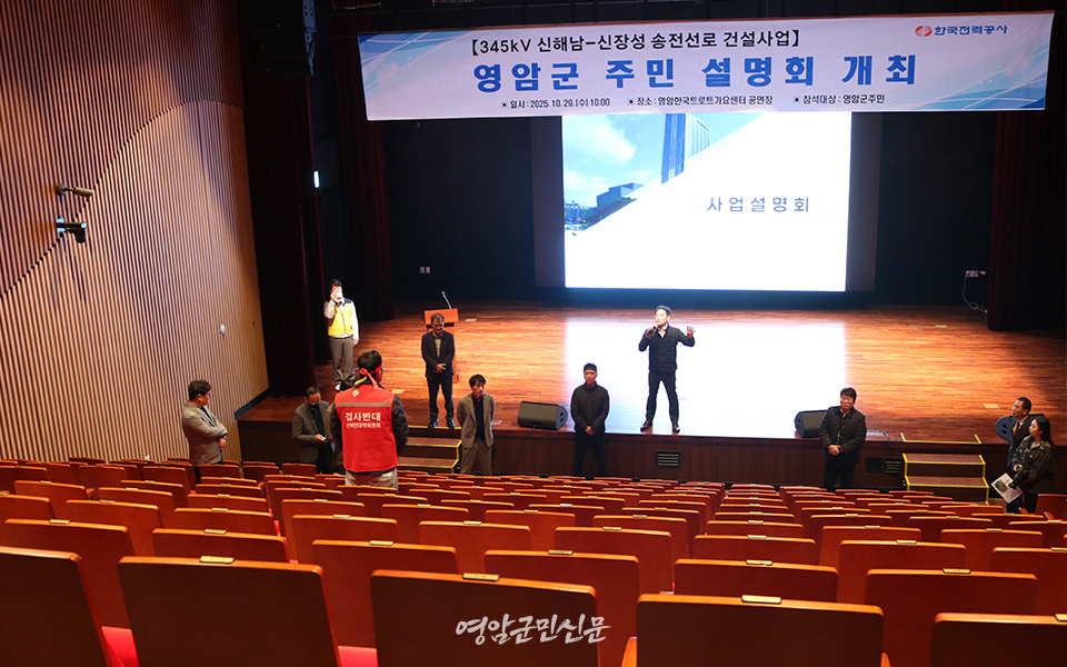 한전은 29일 오전 10시 영암읍 트로트가요센터에서 송전선로 건설사업 설명회를 열었다.