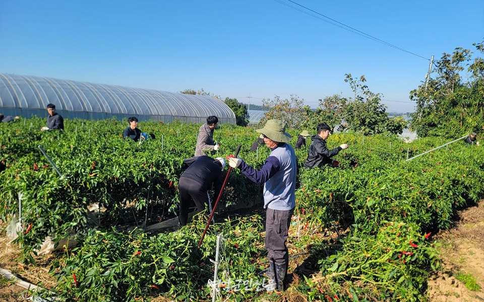 문기수 인포멀그룹 책임은 “수확철 인력 부족으로 어려움을 겪는 농가에 도움을 주기 위해 나왔다”고 말했다.