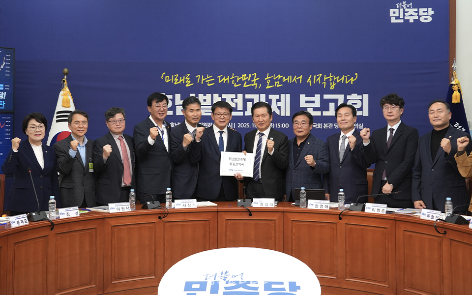 서삼석 위원장도 “이재명 대통령과 당 지도부의 관심과 애정이 호남 발전의 기회로 이어질 수 있도록 최선을 다해 준비했다”며 “오늘 보고회가 국가균형성장의 첫걸음이 되길 바란다”고 강조했다.