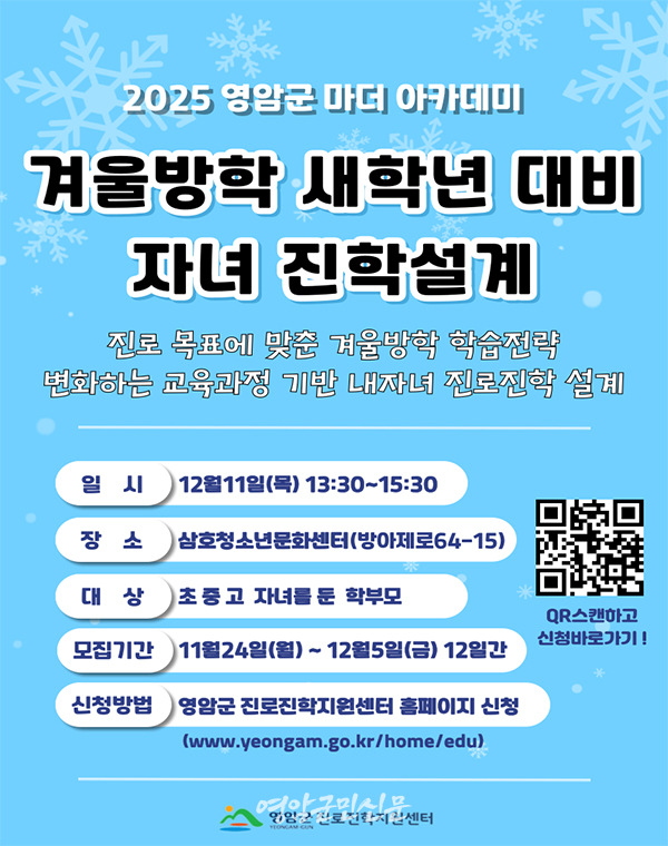 아카데미 참여를 희망하는 학부모는 영암군진로진학지원센터 홈페이지와 전화(061-470-2717)로 신청할 수 있다.