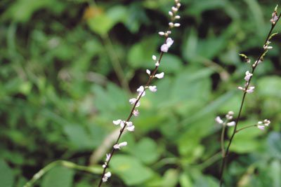 7~8월에 피는 아름다운 연분홍색 꽃과는 달리, 열매 모양은 도둑놈이 남의 집 담을 넘어서 살금살금 가기 위해서 들키지 않으려고 발 뒷꿈치를 들고서 걷는 모습 같다. 산행시에는 도둑놈의 갈고리가 당신의 옷을 훔쳐가지는 않는지 잘 살펴보기를 바란다. 학명: Desmodium Oxyphyllum.