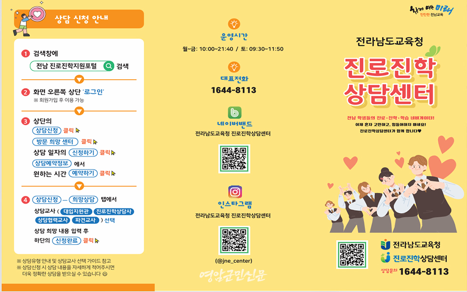 한편, 전남교육청 진로진학상담센터는 연중 진로·진학 상담을 제공하고 있으며, 수시·정시 대비 프로그램, 모의면접, 학부모 진로진학 아카데미 등 다양한 지원 정책을 꾸준히 운영하고 있다.