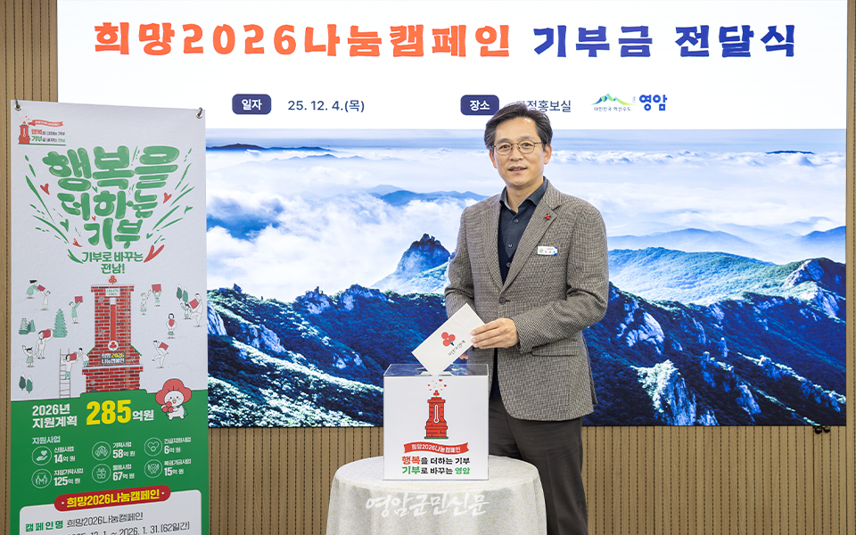 그는 “나눔은 건강하고 따뜻한 지역사회의 원동력이다. 영암군민 모두 참여하는 사회운동으로 키워 영암공동체를 더욱 단단하게 만들고, 나눔이 영암의 기초 문화로 뿌리내릴 수 있도록 하자”고 당부했다.