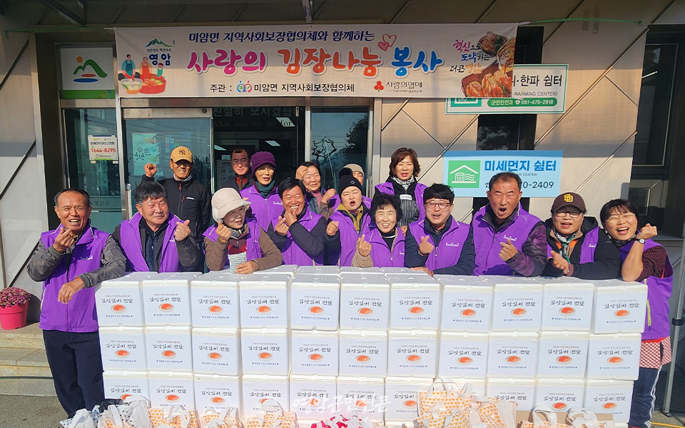이정숙 미암면지사협 총무는 “준비 과정이 쉽지는 않았지만, 추운 겨울에 어르신과 이웃이 맛있게 드실 모습을 생각하면 힘이 난다. 지사협 위원들이 함께 양념을 만들고, 서로 웃으며 김장을 하니 그 자체로 너무 즐거운 시간이었다”고 밝혔다.