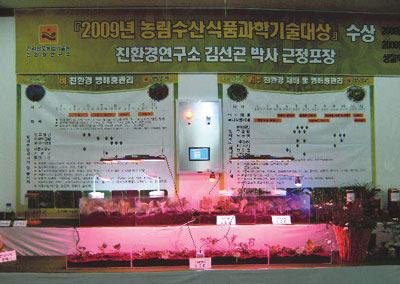 전시장에서 영암읍 서남리 소재 (주)파루스코리아(대표 서재영) 관계자는 “LED는 각 파장에 따라 나방류 해충을 유인 또는 기피 효과가 있어 차세대 해충 방제 도구로 각광받게될 것”이라고 밝혔다.