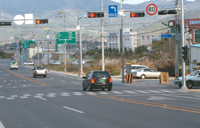 이곳은 그동안 신호등 없이 교통흐름이 진행됐지만 4차로로 도로폭이 확장되면서 차량들의 과속질주로 인해 길을 건너는 보행자의 안전이 위협받고 있다는 지적이 나오면서 신호등이 설치운영되고있다.