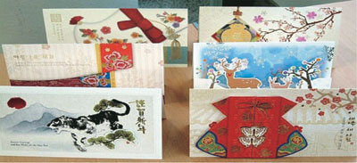 이번에 선보인 ‘2010 우편연하장’은 모두 13종으로, 고급형 3종(1,000원), 일반형 7종(650원), 청소년용2종(650원), 연하엽서 1종(320원)이다.