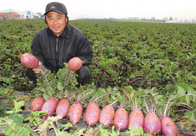 보라색을 띈 ‘자색무’가 영암에서 올해 첫 재배됐다.