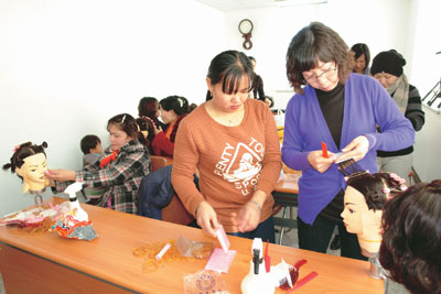 6월말까지 4개월 과정으로 개강한 이·미용 기능반에서는 헤어컷트, 퍼머, 셋팅, 신부화장 등의 내용을 강의한다.