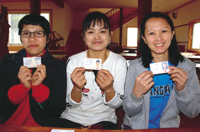 지난해 한국 성씨와 한국이름으로 개명하고 새 주민등록증을 발급받은 필리핀 이주여성 3명이 나란히 주민등록증을 들고 활짝 웃었다.