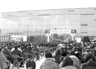 현대삼호중공업이 지난 16일 영암 삼호에 국제규격의 실내테니스 운동시설을 갖춘 ‘현대 테니스장’ 준공식을 가졌다.