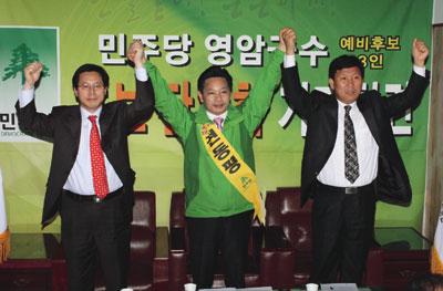 민주당 영암군수 경선후보인 김재원, 전동평, 김원배 후보가 7일 후보 단일화에 합의함으로써 민주당 영암군수 경선이 새로운 국면을 맞게 됐다.