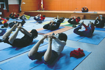영암군종합사회복지관(관장 조길자)이 실시하는 요가교실은 지난달 야간직장인반으로 새로 개설되어 월.금요일 저녁시간에 30여명의 수강생들과 함께 한다.<사진>