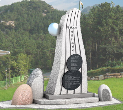 조형물 전면에는 하춘화씨의 히트곡 ‘영암아리랑(이환의 작사)’과 ‘월출산연가’ 가사를 새겼다.