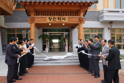 총사업비 34억6000만원이 투입된 ‘왕인학사’는 원룸형으로 4인1실,총21실에 84명이 입사하게되며 친환경·미래형 기숙사로 각 호실이 황토몰탈을 기초로한 한지장판과 편백나무 원목으로 미래사회의 주역인 학생들의 건강을 배려한 대한민국 제1호 친환경 한옥형 기숙사다.