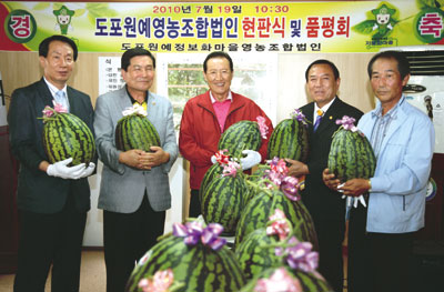 특히, 이날 행사에서는 도포원예정보화마을에서 생산되는 수박, 메론, 고추, 감자 등의 농산물 시식과 더불어 전시회를 개최해 참석자들의 큰 호응을 얻었다.