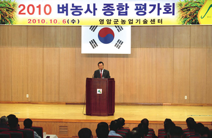 이날 행사는 지난 1년 영암군 벼농사 전반에 대한 성과분석과 문제점 등이 심도있게 토론됐으며, 이에따른 개선방안을 모색하고 고품질 쌀 생산대책을 논의했다.
