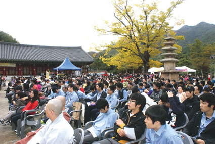 오후 5시 저녁 공양을 마치고 시작된 산사음악회는 ‘이카루스’ 댄싱팀의 댄싱 공연과 통기타 연주, 트럼펫연주, 오목대 대금연주, 김유성, 녹도희, 안치환, 박정식, 정수라의 아!대한민국 등 흥겨운 음악이 펼쳐져 축제 분위기를 더욱 고조시켰다.