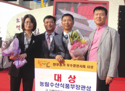 영암축협에 따르면 김씨는 지난 1일 서울 잠실종합운동장 주경기장 앞 특설무대에서 한우자조금사업의 일환으로 열린 ‘2010년도 한우농가 우수경영사례‘에서 대상으로 선정, 유정복 농식품부장관으로부터 대상 상장과 300만원의 포상금을 함께 수상했다.