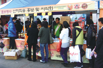 금정 대봉감 시식 및 판매행사가 서울서 열려 대봉감의 인지도 제고에 기여했다. 지난 12일 서울시 동대문구 헬로우APM빌딩 광장에서 열린 대봉감 시식 및 판매행사에는 금정면 공무원과 금정농협 직원, 대봉감친환경작목반 회원과 출향인 등 150여명이 참여했다. 이날 행사에서는 대봉감 가공식품 전시 및 판매 시식행사가 마련돼 성황을 이뤘다.