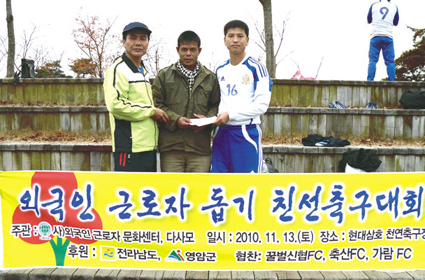 이날 대회는 지난 10일 새벽 2시께 오토바이 사고를 당해 목포기독병원 중환자실에 사경을 헤메고 있는 외국인 근로자인 하이(23, 베트남)씨를 돕기 위한 것으로, 신협FC 축협FC 가람FC 중고등부 등 4개 팀이 참가했다.