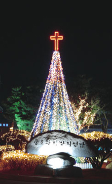 영암군교회협의회(회장 박대식) 선교분과위원회(위원장 윤병상)와 영암군이 함께 설치한 송년 및 새해맞이 경축트리가 지난달 28일 영암군 영암읍 로터리와 삼호읍 영산호 관광지에 점등됐다. 이번에 점등한 경축 트리는 경인년을 잘 마무리 하고 희망 넘치고 활기찬 새해를 맞이하려는 지역민들의 염원을 담아 12월 말일까지 영암군을 환하게 밝히게 된다.