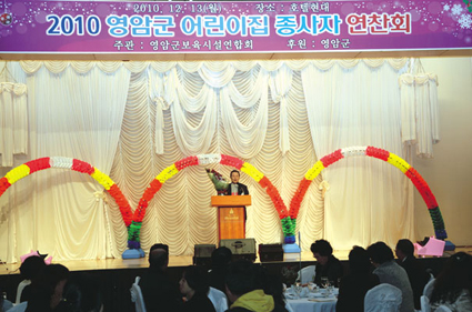 영암군보육시설연합회 이금자 회장은 이날 인사말을 통해 “36개 어린이집의 모든 교사와 종사자들이 그동안 영암의 미래를 밝혀줄 영유아를 보육해온데 대해 감사와 격려를 보낸다”면서 “우리 모두가 보육사업을 통해 지역사회 발전에 기여하고 있다는 자부심을 갖고 한마음 한뜻으로 어린이집 근무에 최선을 다하자”고 말했다.