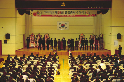 이날 졸업증서 수여식에서는 졸업생 103명이 졸업증서를 받았으며, 내신최고상과 수능최고상, 교과 우수상, 개근상, 공로상, 봉사상 표창과 기관사회단체장 표창장이 수여됐다.