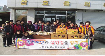 영암소방서(서장 이기춘) 삼호읍 여성의용소방대와 소방공무원 등은 지난달 28일 설 명절을 전후해 따뜻한 이웃사랑을 실천하기 위해 삼호읍 독거노인 20세대를 방문, 배추물김치, 김, 감 등 90만원상당을 전달하고 가정내 정리정돈, 집안청소 등을 실시하는 등 봉사활동도 펼쳤다. 삼호읍 여성의용소방대는 화재 및 재난발생시 지역사회를 지키는 안전지킴이 역할을 수행하면서도 매년 불우한 이웃과 어려운 가정을 찾아 참 사랑을 꾸준히 실천, 따뜻한 사랑의 분위기를 만들어가고 있다.