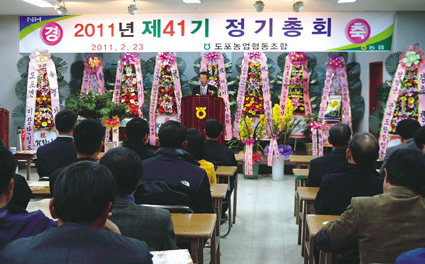 도포농협 이진용 조합장은 “지난 한해는 세계경제의 어려움과 지구환경의 온난화 및 이상기후 등으로 인해 농업농촌경제가 매우 어려운 상황이었다”면서 “그럼에도 도포농협은 조합원의 성원에 힘입어 각종 사업을 차질 없이 추진할 수 있었다”고 공을 조합원들에게 돌렸다.