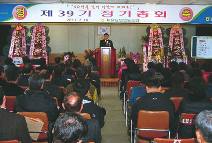 “2010년도 결산결과 당초 계획한 사업목표손익 1억5천만원을 초과달성해 출자배당 및 이용고배당을 5%이상 할 수 있게 됐습니다. 이는 조합원 모두가 혼연일체가 되어 주인의식을 갖고 노력한 결과인 점에서 거듭 조합원들께 감사를 드립니다.”