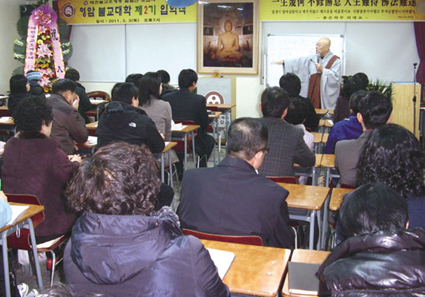 이날 입학식에서는 주임강사인 한탑스님의 설법회가 열렸다. 이날 설법회는 한탑스님의 선수행에 대한 명쾌한 설명과 아울러 올바른 실천 방안을 제시했다.