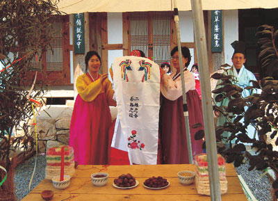 지난 12일 구림 전통한옥마을 대동계사에서 열린 ‘왕인촌 큰잔치’. 이날 전통혼례, 향토음식, 민박체험프로그램 등 구림 전통한옥마을 체험프로그램 시범과 체험, 경연대회가 성황리에 개최된 것. 왕인촌주민자치회(최장 최남호)가 올해 처음으로 마련한 ‘왕인촌 큰잔치’는 문화관광부가 시행한 ‘협력적 관광개발 모