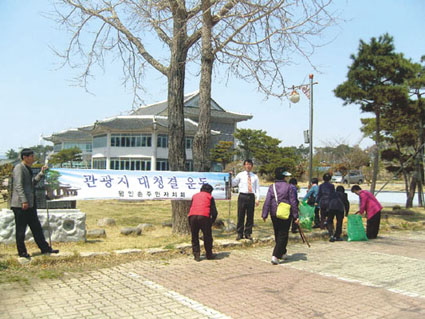구림마을 왕인촌주민자치위원회(회장 최남호)는 13일 벚꽃 상춘객을 맞이하기 위한 관광지 대청소를 실시했다. 왕인촌 민박회원 25명은 이날 도기박물관-구림체육공원-죽정서원-구림천으로 이어지는 관광지에서 오물수거 등 환경청결 봉사활동을 전개했다.