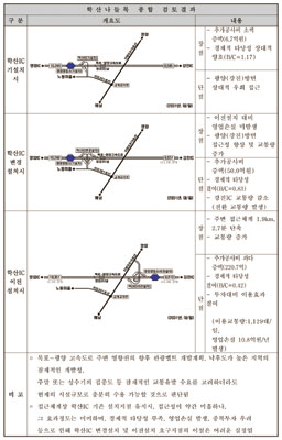 접근체계측면에서도 도로공사는 제2안과 제3안에 따른 거리 및 시간단축효과가 극히 미미해 현 상태로도 주요간선도로와 접근성 및 이동성은 양호하다고 판단했다.