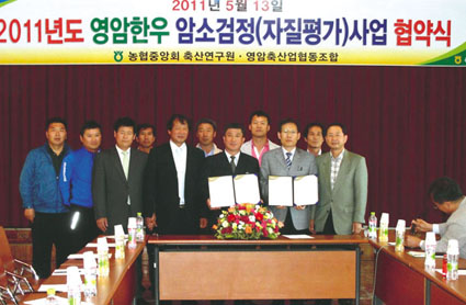 영암축협과 농협 축산연구원이 영암의 암소한우에 대한 자질평가를 위해 체결한 협약으로 이후 추진되는 추진되는 암소 개량사업은 초음파 진단과 자료조사, 교육, 화상판독, 유전능력평가 등 7천600만원(3,800두) 예산이 투입된다.