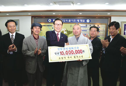 월우 스님은 장학금을 전달하며 “우리 인간은 더불어 공생공존하는 삶을 이어나가야한다”며 “미래를 준비하는 어린 학생들이 꿈을 펼칠 수 있도록 작지만 힘이 되어주고 싶었던 마음을 비로소 실천하게 되어 기쁘다”고 말했다.